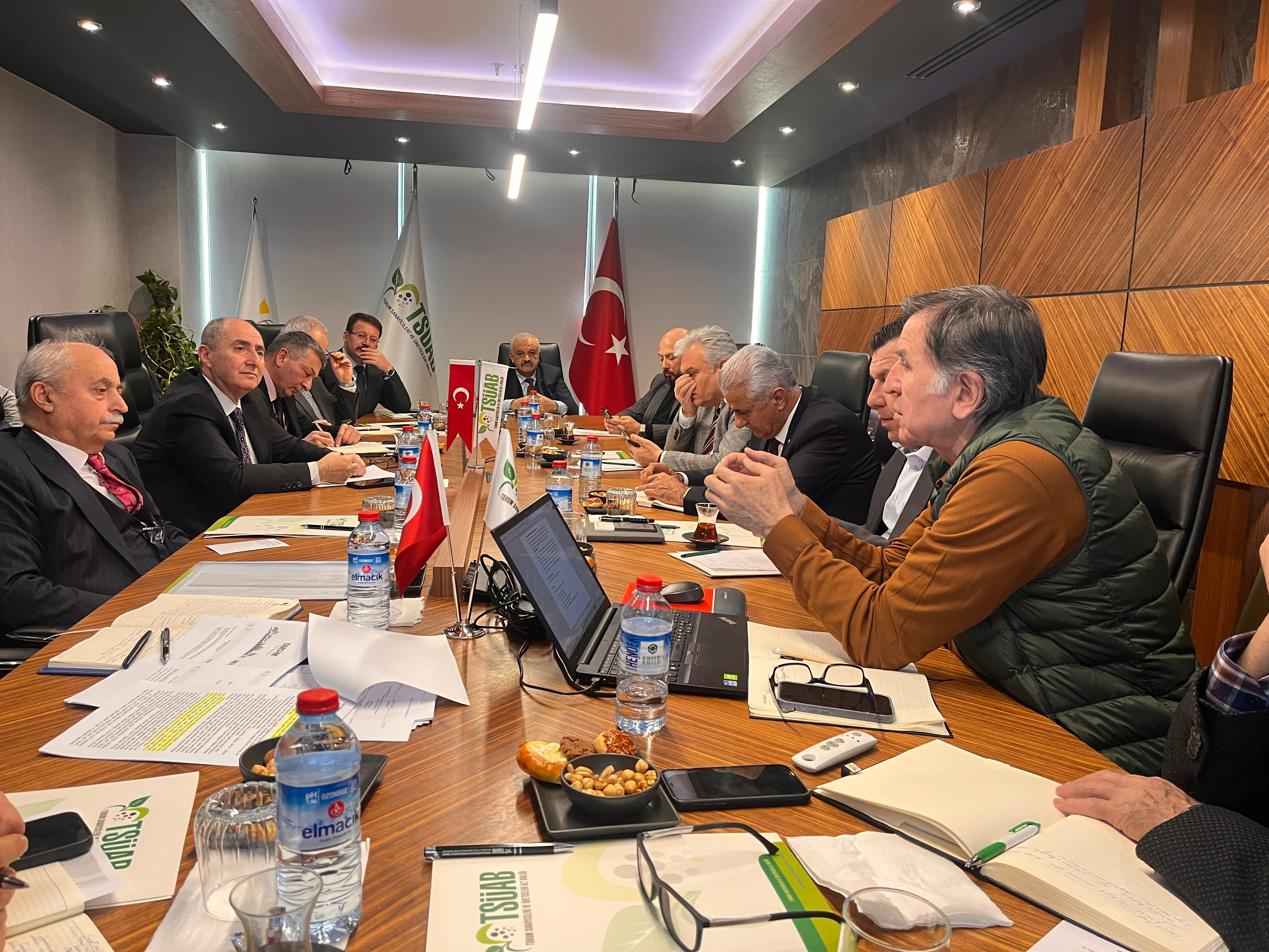 TSÜAB Ofisinde gerçekleştirilen görüşmeye TSÜAB ve ECOSA Başkanı Yıldıray Gençer, TÜRKTOB Başkanı Hacı Ömer Güler, FÜAB Başkanı Serdar Şendağ, FİDEBİRLİK Başkanı Kayhan Yıldırım, SÜSBİR Başkanı Savaş Akcan, TYAB Başkanı Miktat Olgun ile Birliklerin Genel Sekreter ve teknik birim uzmanları katılım sağladı.